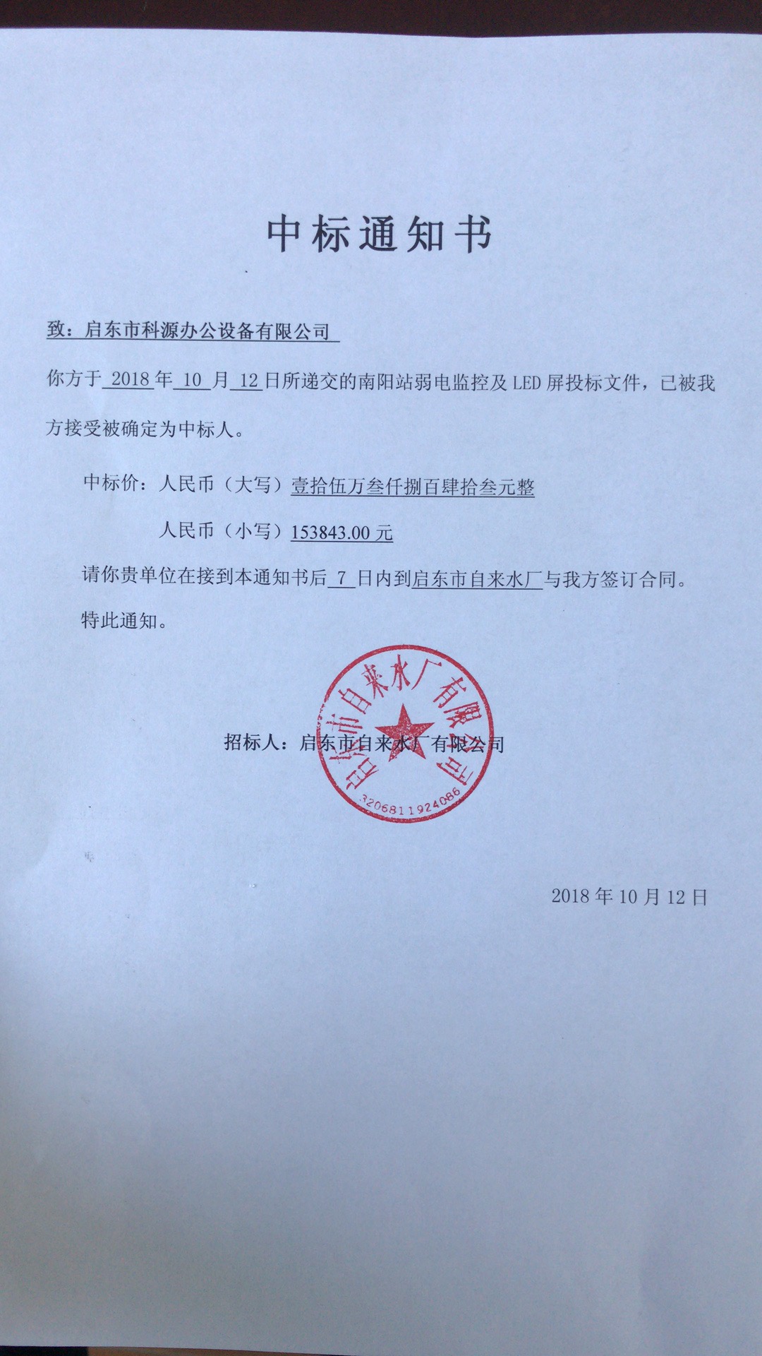 中标通知书