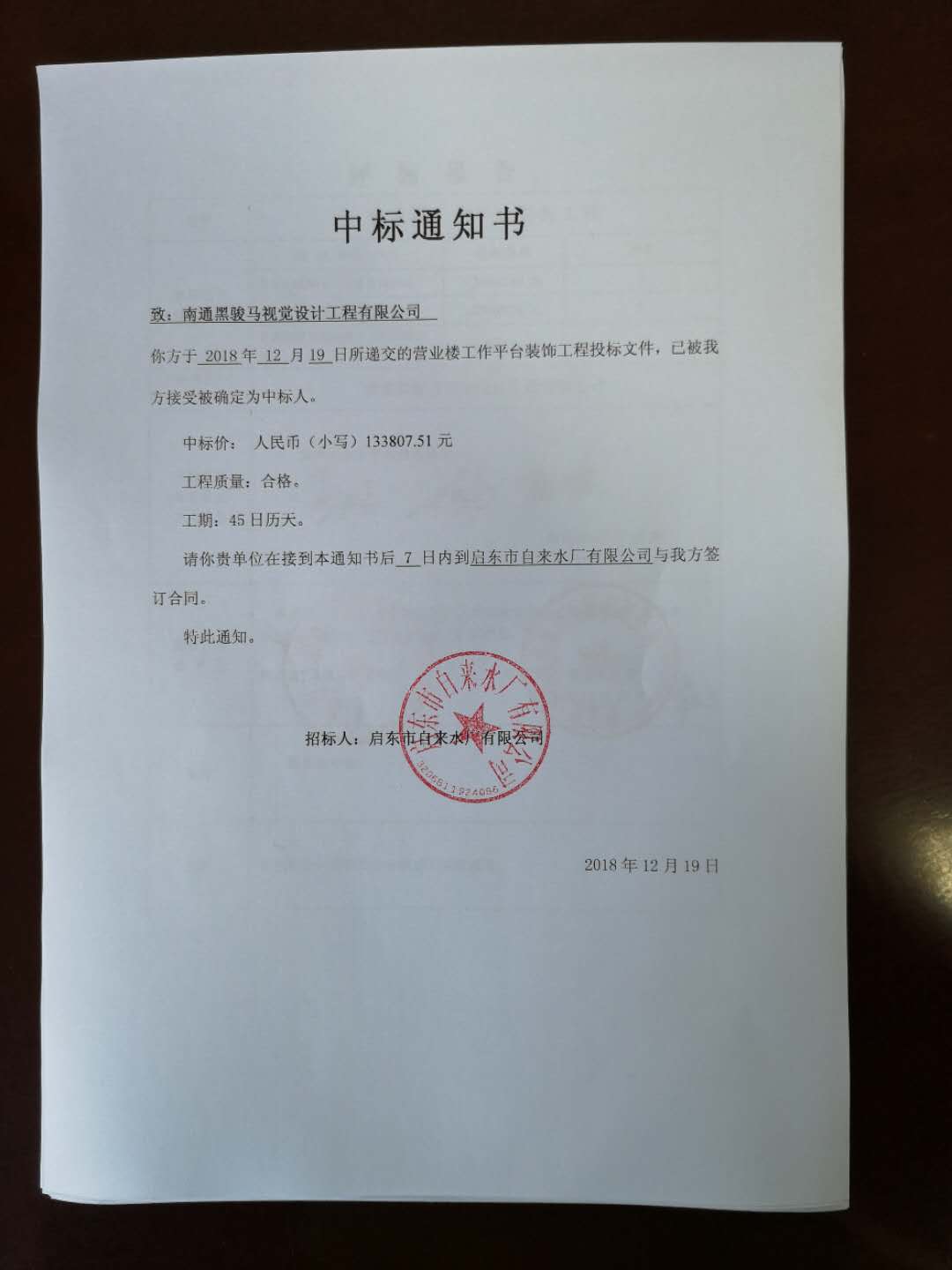 中标通知书